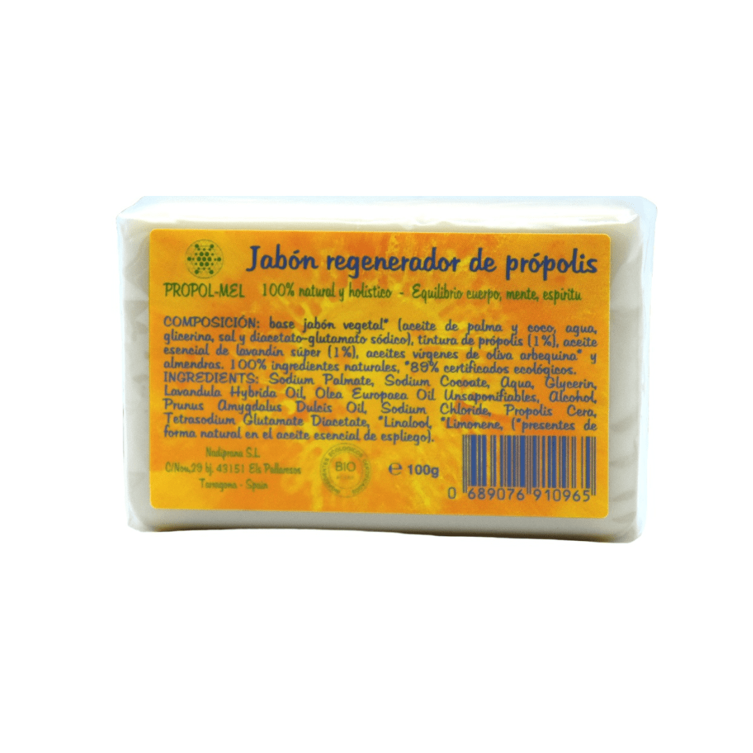 El jabón de própolis ecológico y el gel de baño son nutritivos, regeneradores, hidratantes y antisépticos, aptos para todo tipo de pieles. Creado para la higiene de todo el cuerpo y para pieles con alteraciones específicas y para pieles que requieran cuidados especiales (acné, pieles sensibles, dermatitis, etc).